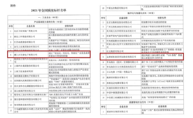 近日,根据中国质量协会发布的《关于公布2021年全国质量标杆典型经验遴选结果的通知》,厦门方圆服务客户厦门天马微电子有限公司、金牌橱柜家居科技股份有限公司分别以“通过精益化、信息化、智能化实现全流程质量协同管控”及“构建工业化柔性定制GIS系统塑造核心质量竞争力的经验”项目成功入选。